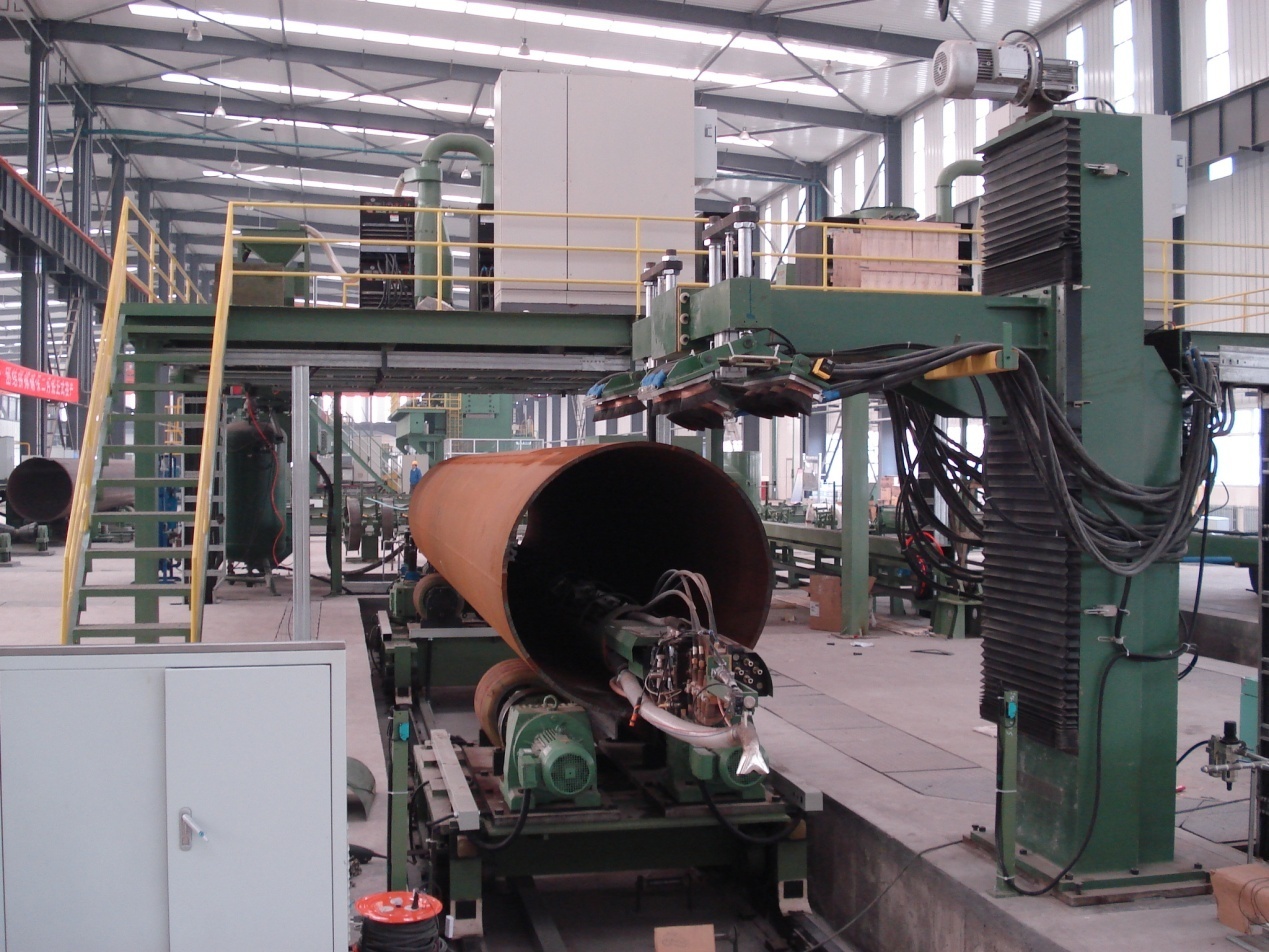 ● 2套(3套)四絲或五絲外焊:內(nèi)焊之后,在鋼管外部進行(4絲或5絲)埋弧焊接。