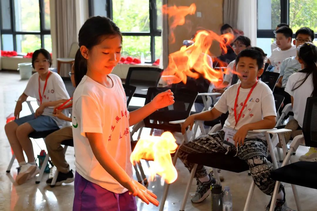 營(yíng)員們觀看紅色電影、重溫紅軍歷史、感悟戰(zhàn)斗精神,播種下閃閃的愛(ài)國(guó)之心??茖W(xué)實(shí)驗(yàn)中,營(yíng)員們化身小小科學(xué)家,在實(shí)踐中感受科技魅力與紅色智慧。